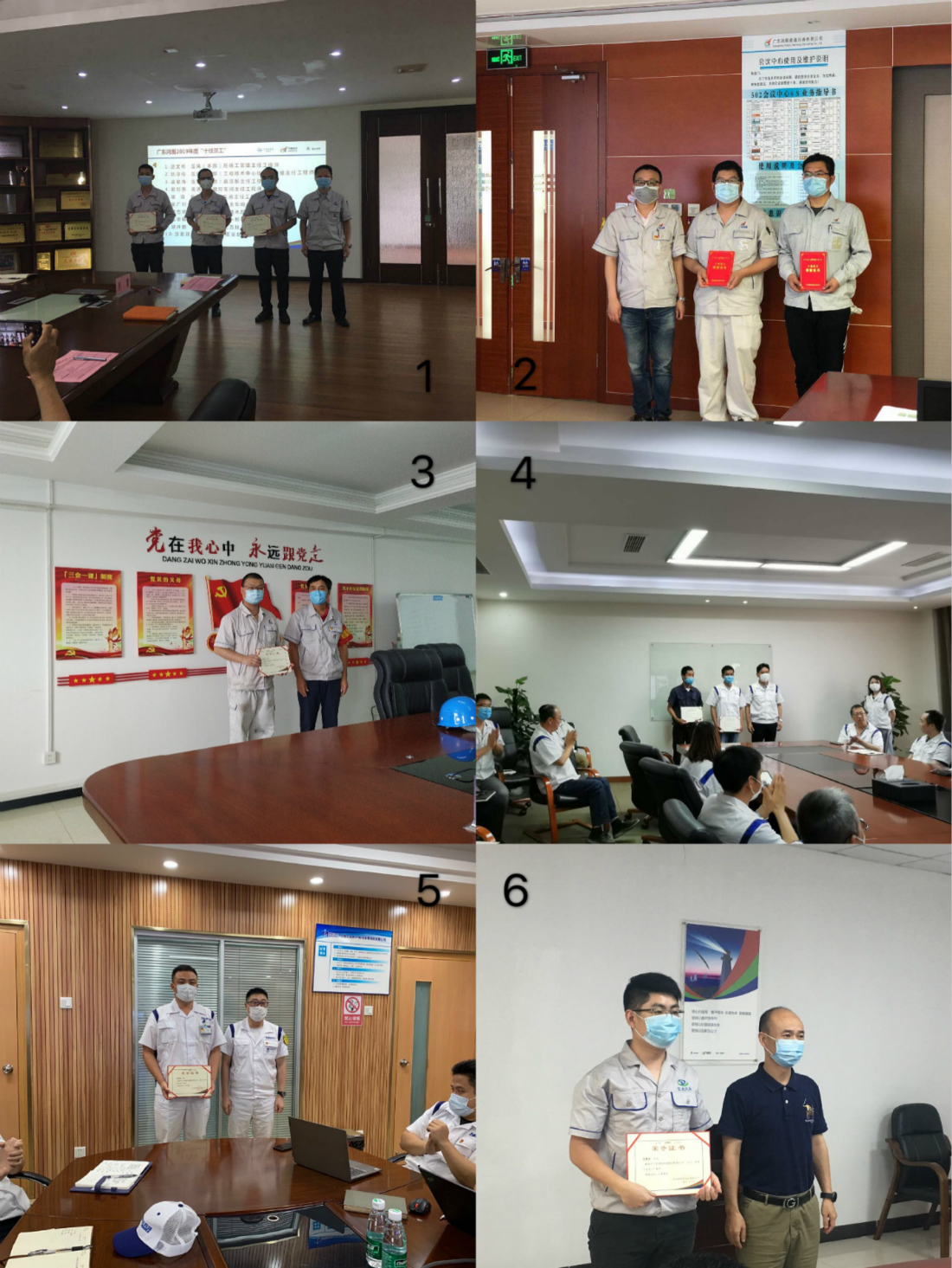 1. Group photo of Mo Jianzhong (first from the right), general manager of Die-casting (Headquarters) with "Top Ten Employees" Wen Wenbin (fourth from the right), Lu Chunjia (third from the right) and Liang Xinghai (second from the right)