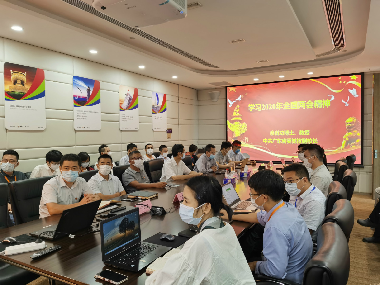 In order to celebrate the 99th anniversary of the founding of the Communist Party of China, in the afternoon of June 29, the General Party Branch of Hongtu Technology organized a special situation report meeting, where Professor Yu Fugong, vice president of the Party School of the Guangdong Provincial Committee of CPC and vice dean of the Guangdong Institute of Public Administration, was invited to give a special report on the spirits of the 2020 national two sessions. Zhou Leren, secretary of the General Party Branch of the company, presided over the meeting and lectured on the special party class.All the party members, managements above director level in each division and all the members of Guangzhou Operation Center attended this meeting.