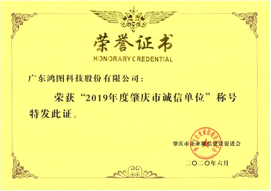 6月12日,肇慶市企業(yè)誠信建設(shè)促進會舉辦了“倡導(dǎo)誠實守信 樹立先進典型”誠信單位主題實踐活動,鴻圖科技榮獲“2019年度肇慶市誠信單位”稱號。