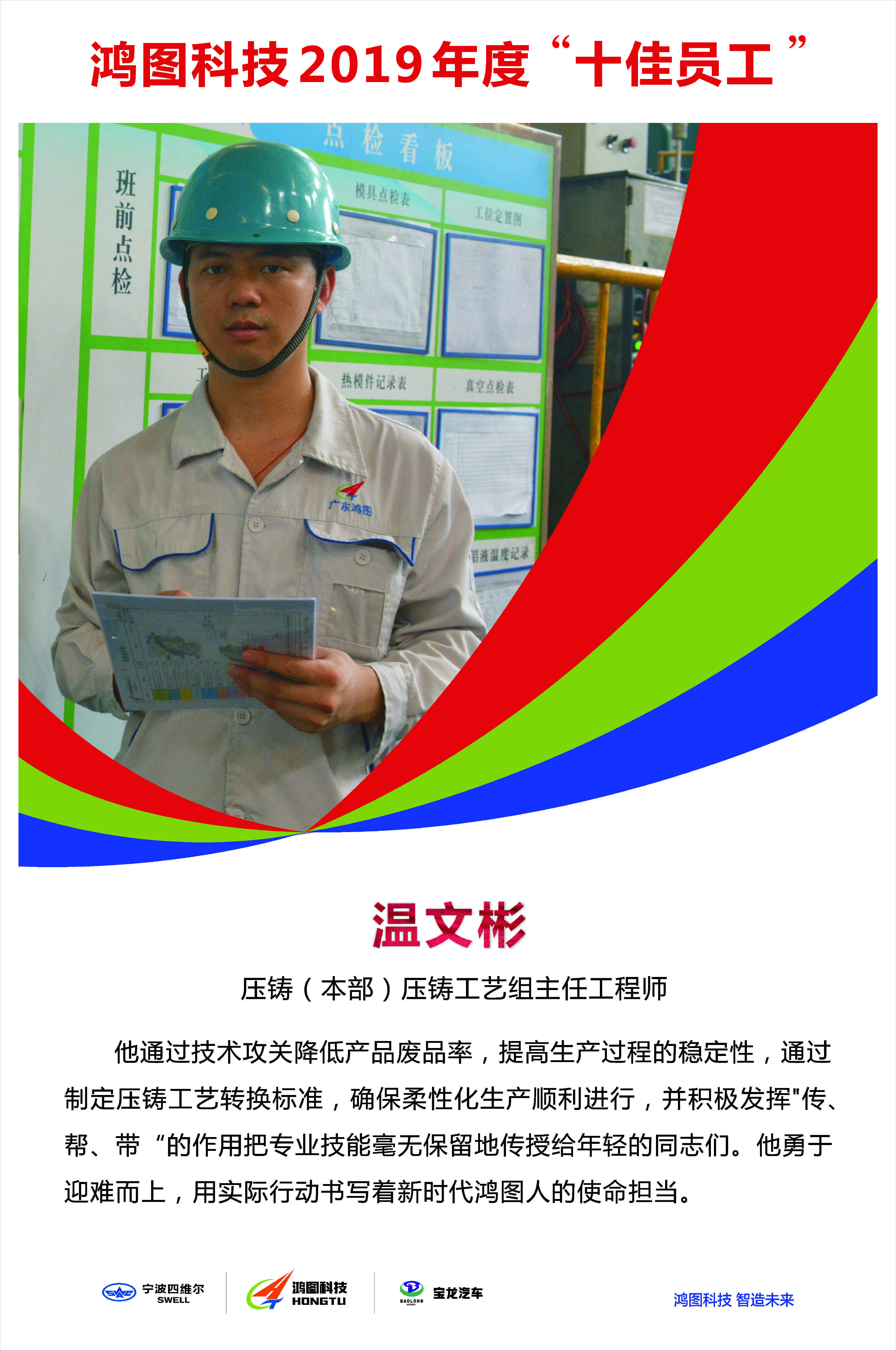 作為壓鑄(本部)壓鑄工藝組主任工程師,溫文彬主要從事壓鑄生產(chǎn)工藝的研究和開(kāi)發(fā),致力于提升壓鑄產(chǎn)品質(zhì)量提和壓鑄生產(chǎn)效率。入職以來(lái),他曾擔(dān)任過(guò)壓鑄工藝員、工藝組長(zhǎng)、產(chǎn)品工程師、主任工程師等職務(wù),從一名普通大學(xué)生慢慢成長(zhǎng)為壓鑄技術(shù)骨干。