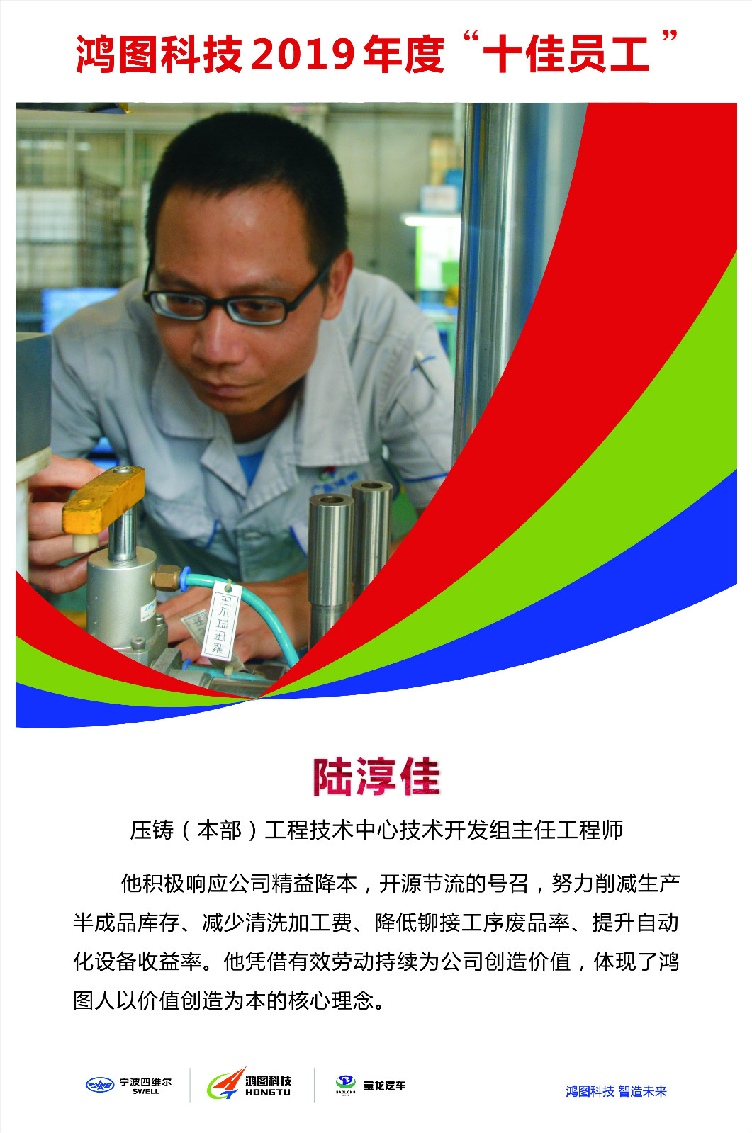 作為壓鑄(本部)工程技術(shù)中心技術(shù)開發(fā)組主任工程師,陸淳佳主要從事技術(shù)攻關(guān)、產(chǎn)線設(shè)計(jì)等工作。入職以來,他曾擔(dān)任過調(diào)試工藝員、產(chǎn)品工程師、工藝改善工程師、技術(shù)開發(fā)工程師、主任工程師等職務(wù),從生產(chǎn)線的基層員工慢慢成長為公司技術(shù)研發(fā)的擔(dān)當(dāng)。