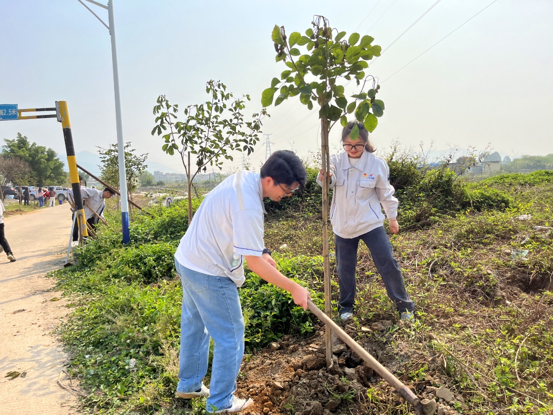 參與活動(dòng)的20余名青年團(tuán)員作為本次植樹活動(dòng)的主力軍,分工協(xié)作,揮鍬挖坑、扶苗培土、澆水養(yǎng)護(hù),展現(xiàn)了新時(shí)代青年的擔(dān)當(dāng)與活力。團(tuán)員陳文毅表示:“親手種下一棵樹,不僅是為生態(tài)貢獻(xiàn)力量,更讓我們深刻體會(huì)到‘綠水青山就是金山銀山’的意義。