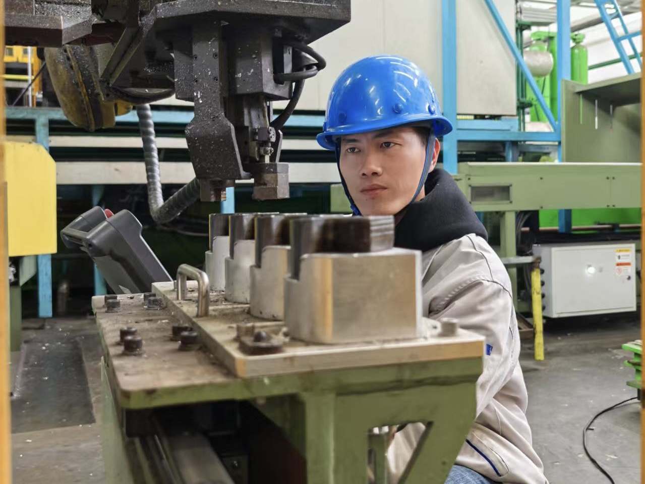 身處制造業(yè)轉(zhuǎn)型升級的浪潮中,余錦祥始終保持著技術(shù)創(chuàng)新的敏銳嗅覺。他主導(dǎo)研發(fā)的智能預(yù)檢測系統(tǒng),通過重構(gòu)設(shè)備運(yùn)行邏輯,提高壓鑄機(jī)與噴涂機(jī)械人的配合精度,使設(shè)備效率提升顯著,并推進(jìn)壓鑄(本部)、金利工廠機(jī)臺改造工作。在大型壓鑄設(shè)備的改造工程中,他通過改造停用放鑲件裝置、優(yōu)化布局程序調(diào)試等,開創(chuàng)性地實(shí)現(xiàn)鑲件自動裝配技術(shù)突破,這項(xiàng)技術(shù)革新不僅大幅降低勞動強(qiáng)度,更將產(chǎn)品工藝穩(wěn)定性提升至新高度。十五年來,余錦祥主導(dǎo)及參與了多項(xiàng)技術(shù)專利研發(fā),這些閃耀著智慧光芒的技術(shù)突破,正持續(xù)轉(zhuǎn)化為企業(yè)高質(zhì)量發(fā)展的核心競爭力。